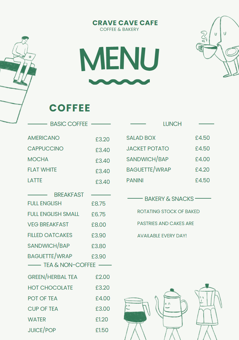 Crave Cave Cafe & Bakery prides itself on its dedication to quality, offering a menu brimming with mouth-watering options that cater to every palate. Start your morning right with their renowned Full English breakfast, perfectly cooked and lavishly presented for just £8.75. For those preferring a lighter option, the Veg Breakfast at £8.00 or the delightful Filled Oatcakes at £3.90 are equally comforting choices that promise to satisfy your morning cravings.
